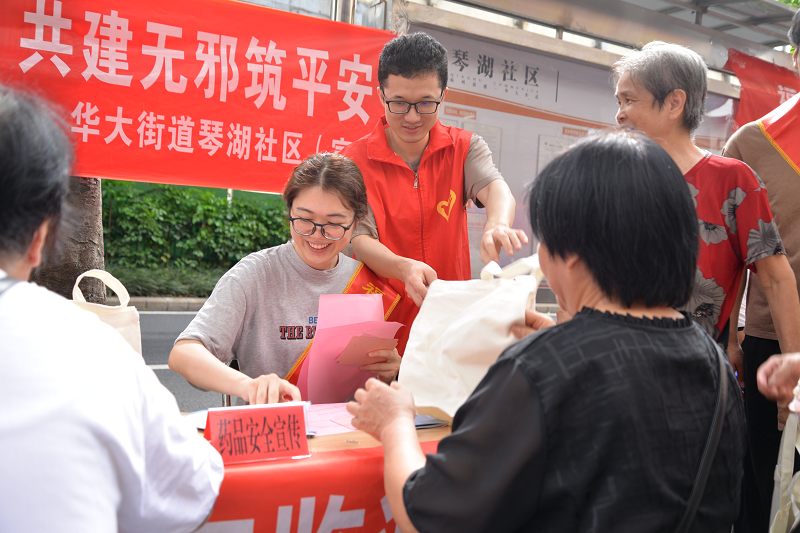 当天,志愿者们还向过往群众开展了药品安全知识宣传、垃圾分类、防诈宣传、平安、综治、反邪教等主题宣传。